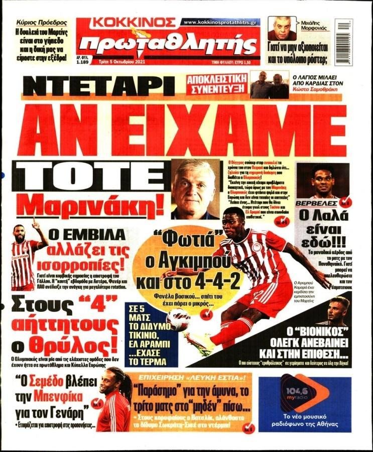 Τρίτη 05 ΟΚΤΩΒΡΙΟΥ 2021