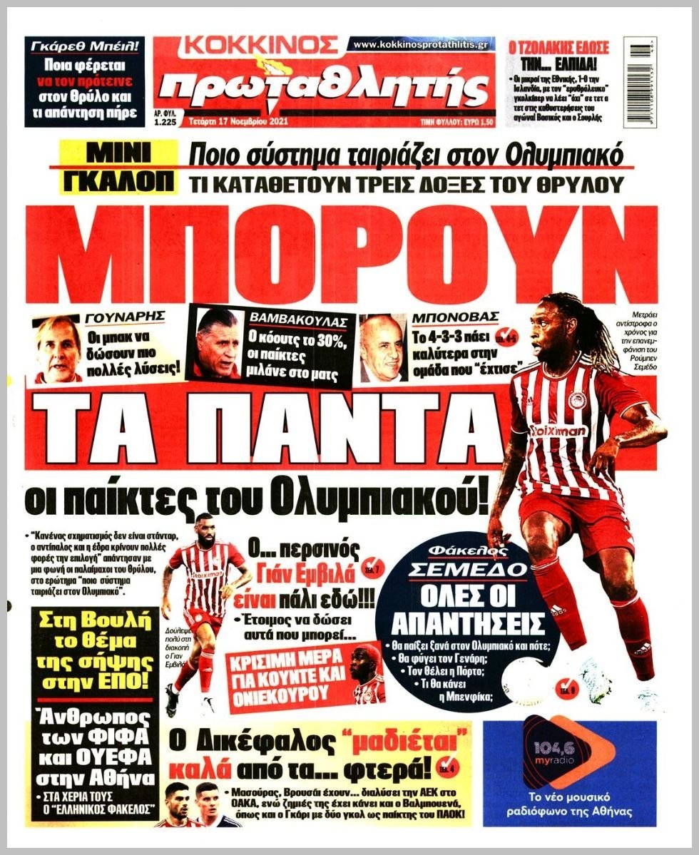 Τετάρτη 17 ΝΟΕΜΒΡΙΟΥ 2021