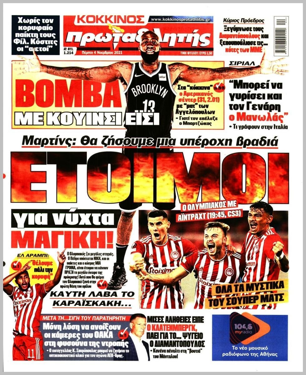 Πέμπτη 04 ΝΟΕΜΒΡΙΟΥ 2021