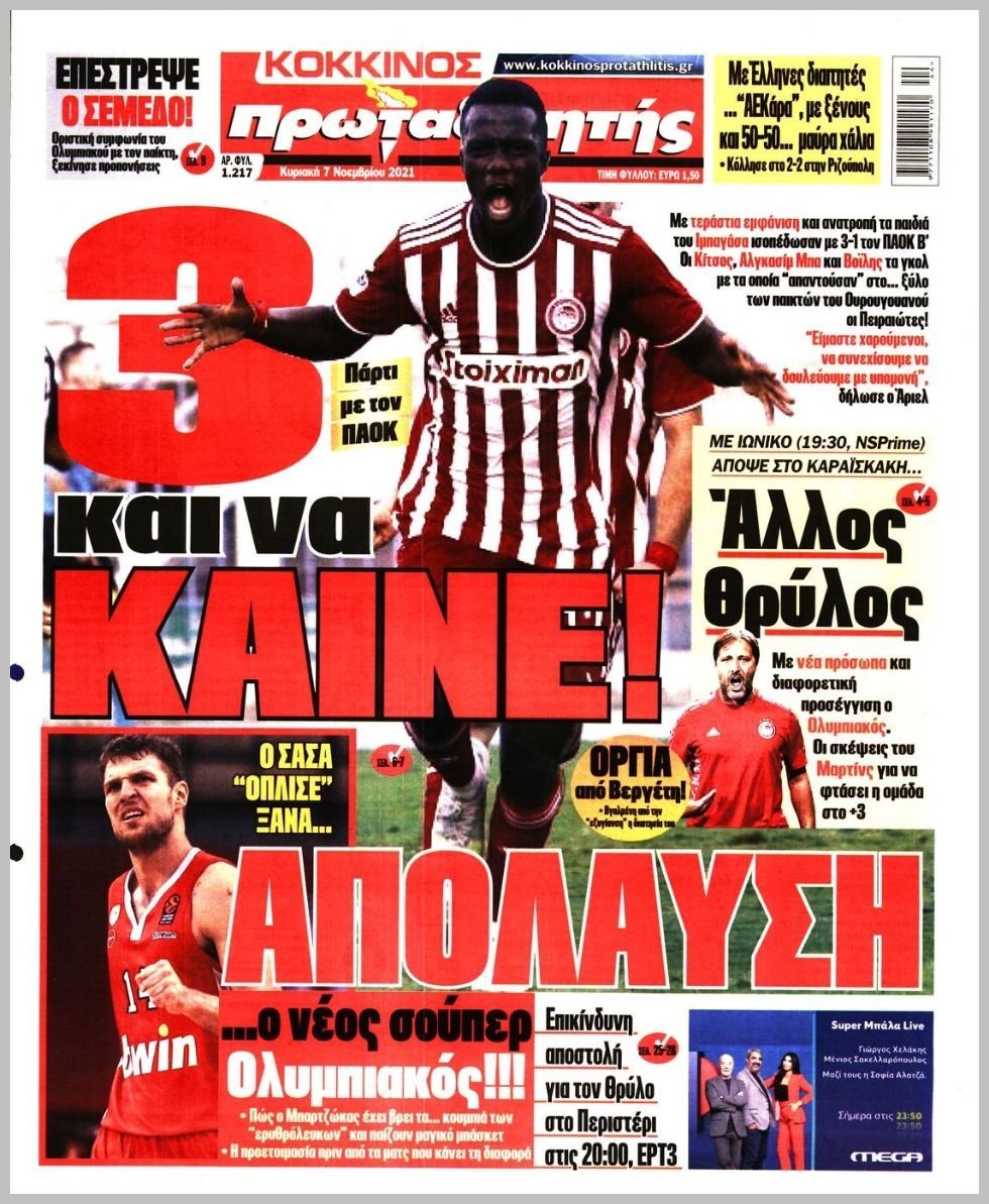 Κυριακή 07 ΝΟΕΜΒΡΙΟΥ 2021