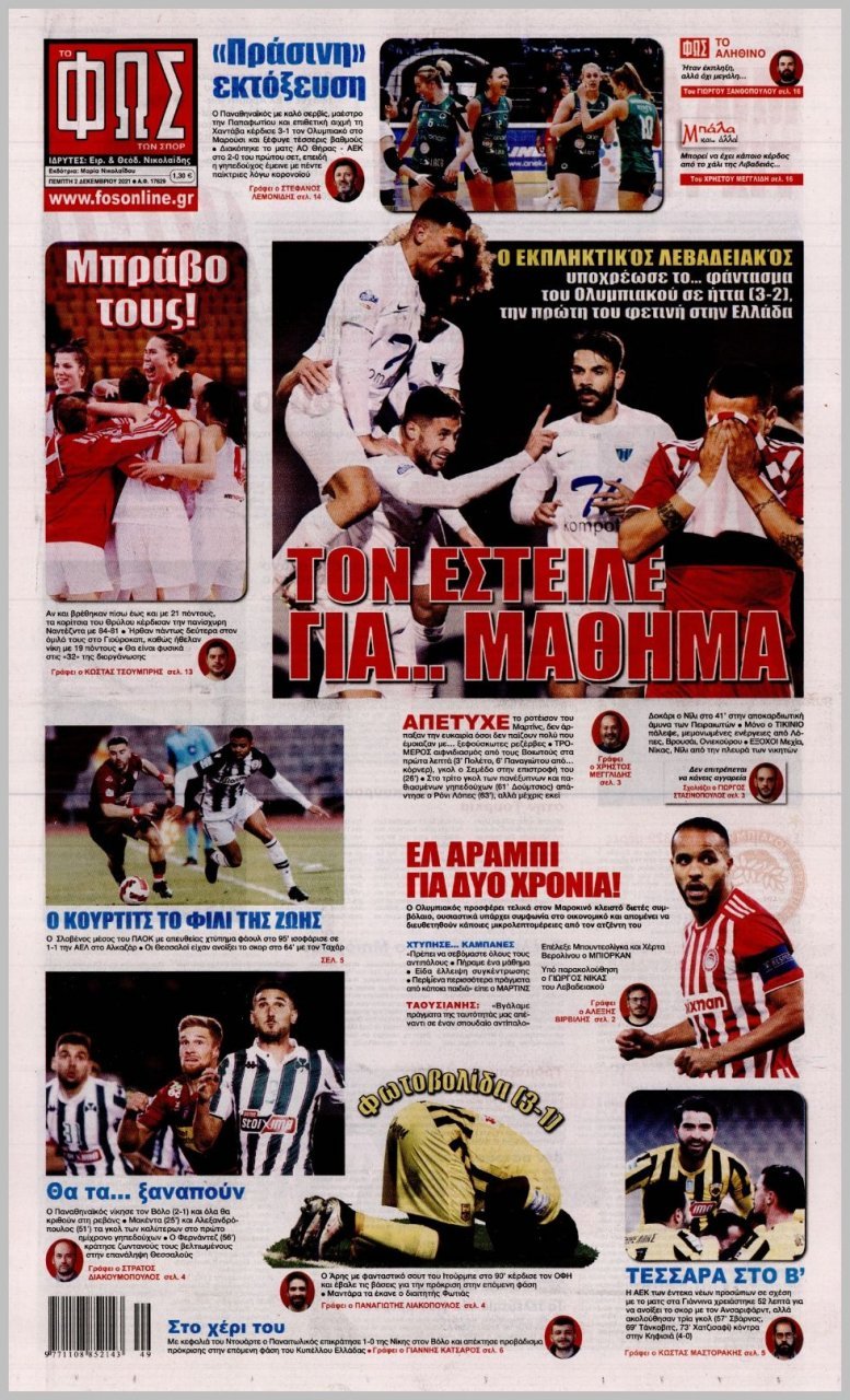 Πέμπτη 02 ΔΕΚΕΜΒΡΙΟΥ 2021