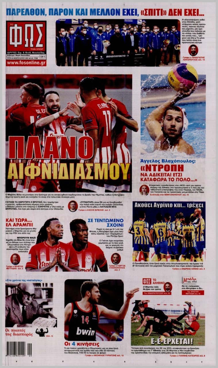 Tuesday 23 ΦΕΒΡΟΥΑΡΙΟΥ 2021