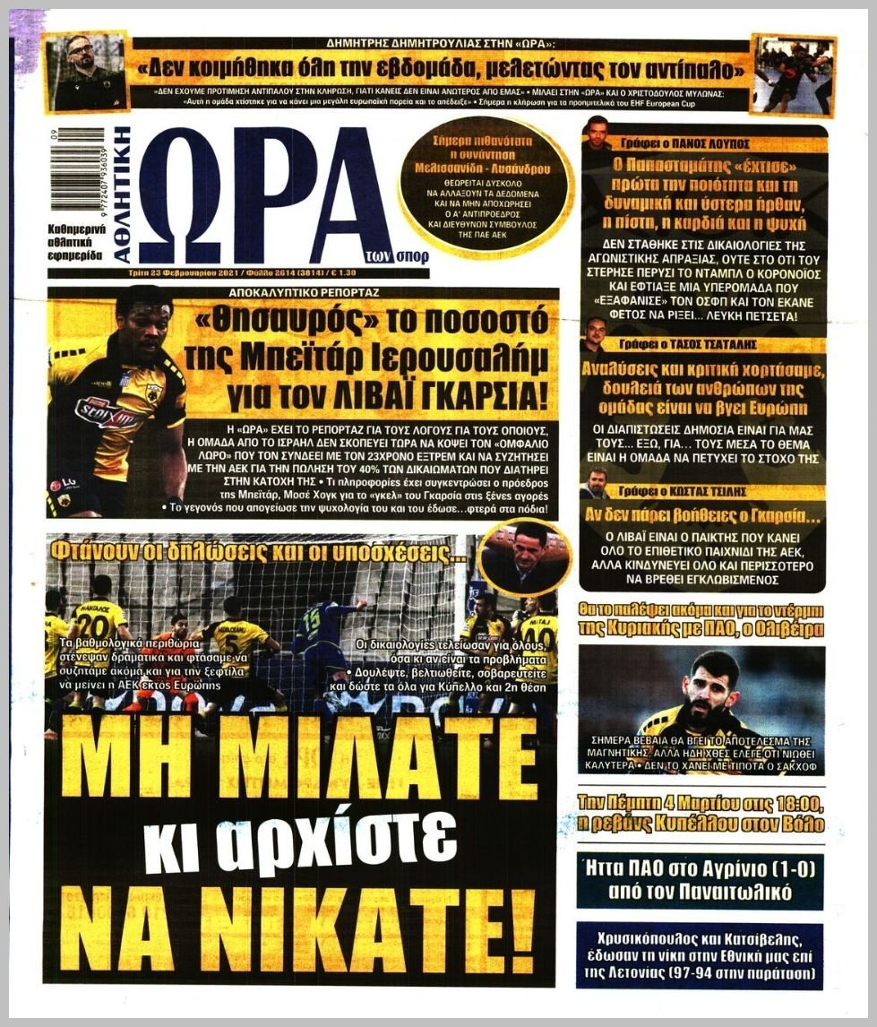 Tuesday 23 ΦΕΒΡΟΥΑΡΙΟΥ 2021