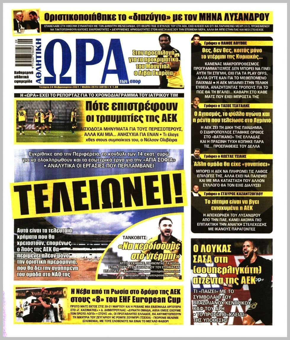 Wednesday 24 ΦΕΒΡΟΥΑΡΙΟΥ 2021