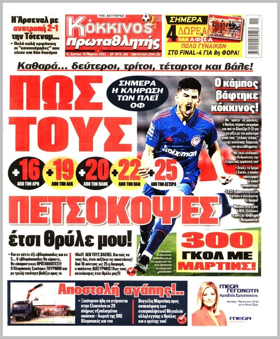 Monday 15 ΜΑΡΤΙΟΥ 2021