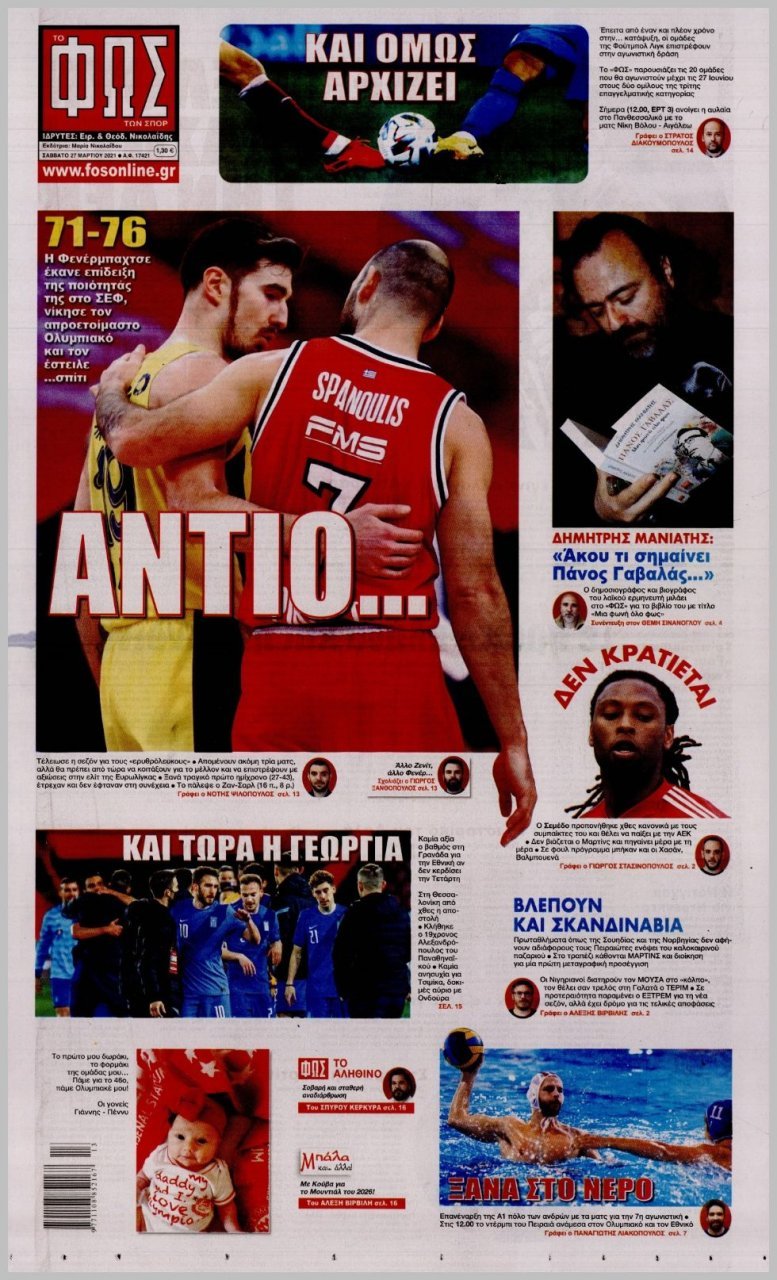 Σάββατο 27 ΜΑΡΤΙΟΥ 2021