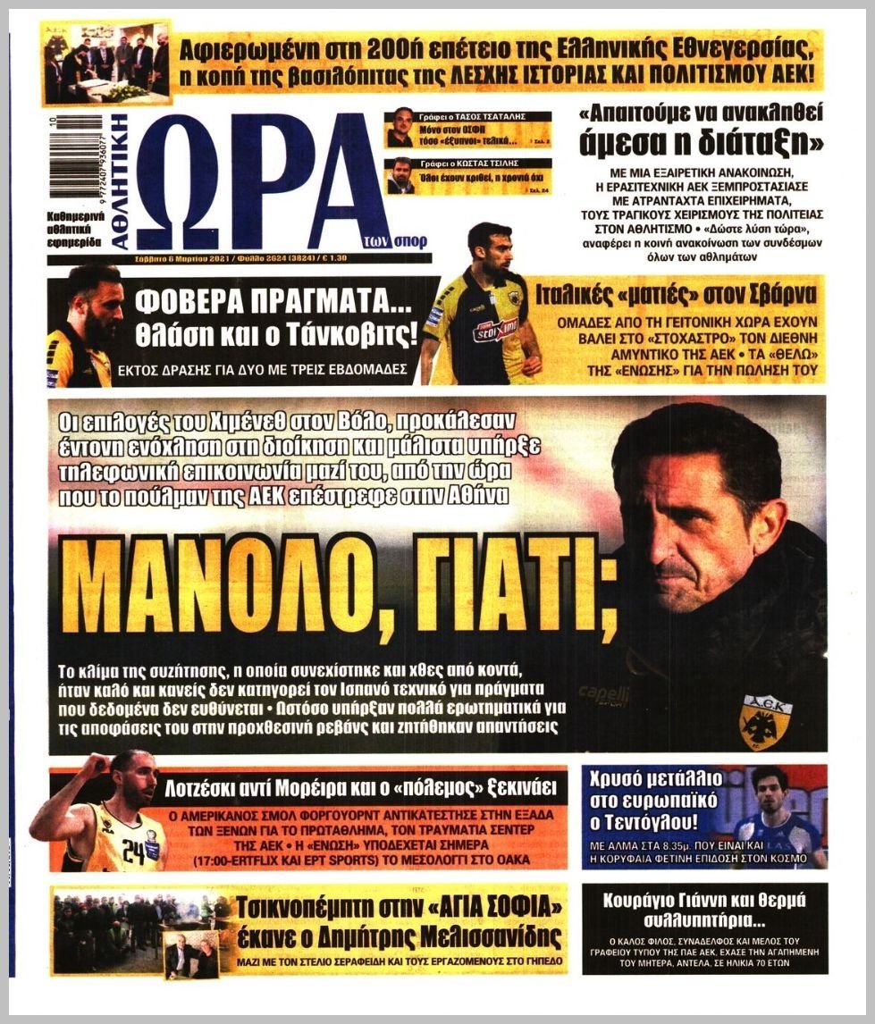 Saturday 06 ΜΑΡΤΙΟΥ 2021