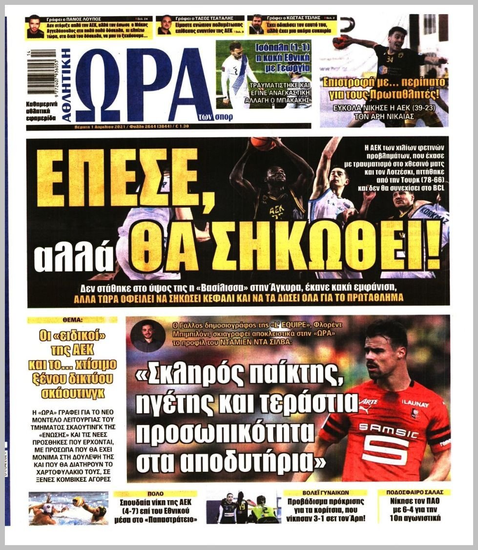 Πέμπτη 01 ΑΠΡΙΛΙΟΥ 2021