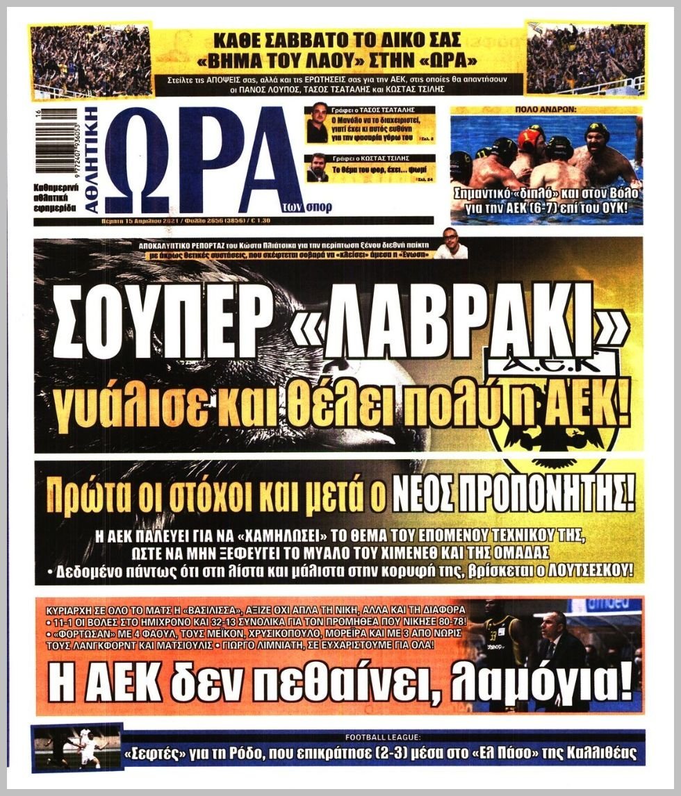 Πέμπτη 15 ΑΠΡΙΛΙΟΥ 2021