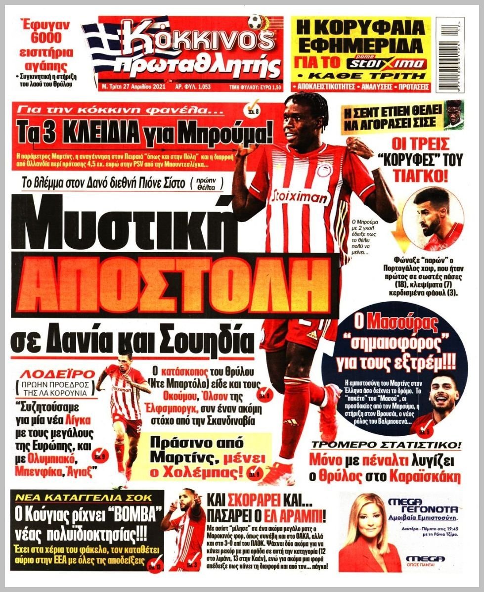 Τρίτη 27 ΑΠΡΙΛΙΟΥ 2021