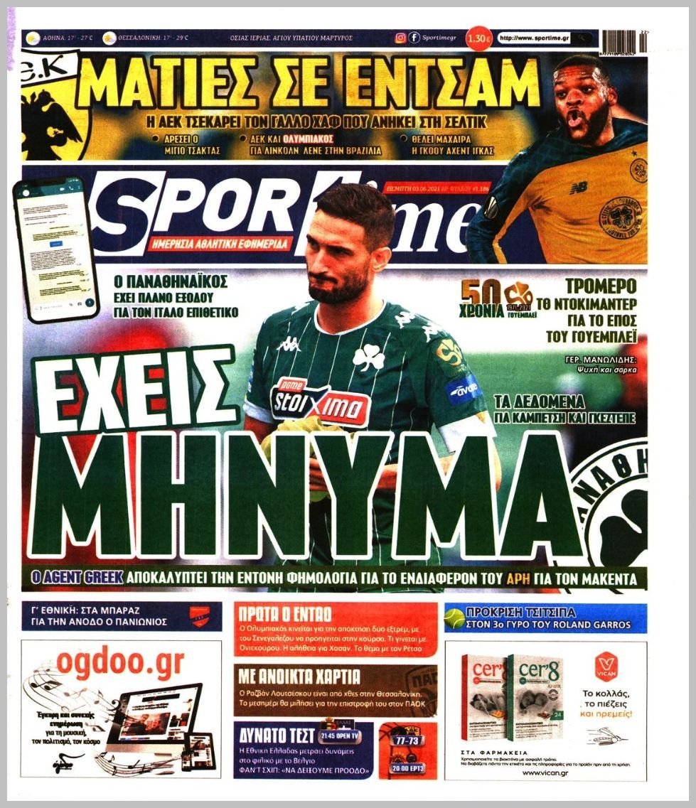 Πέμπτη 03 ΙΟΥΝΙΟΥ 2021