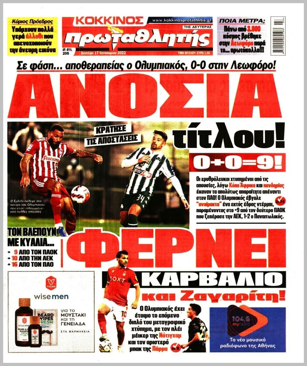 Monday 17 ΙΑΝΟΥΑΡΙΟΥ 2022