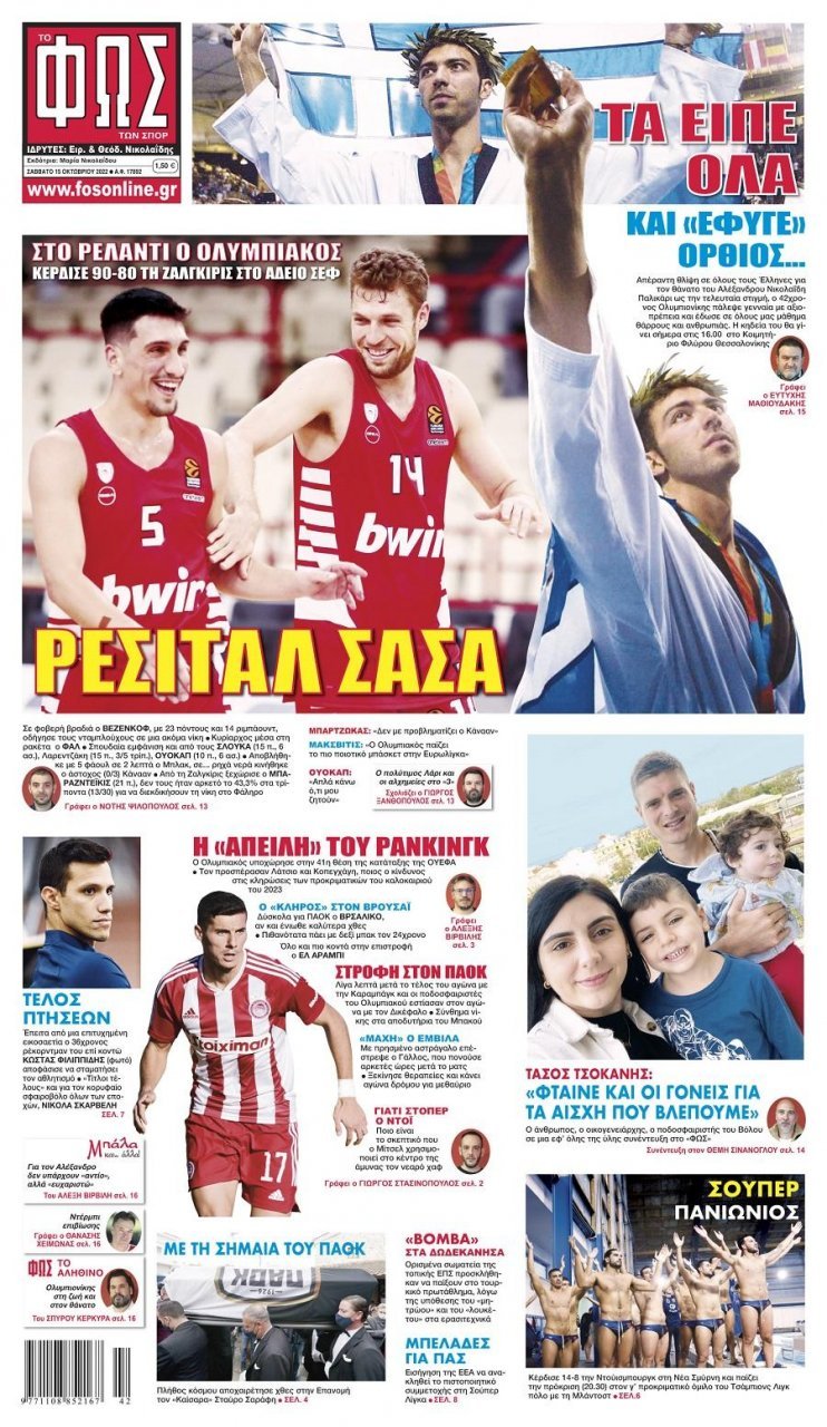 Σάββατο 15 ΟΚΤΩΒΡΙΟΥ 2022