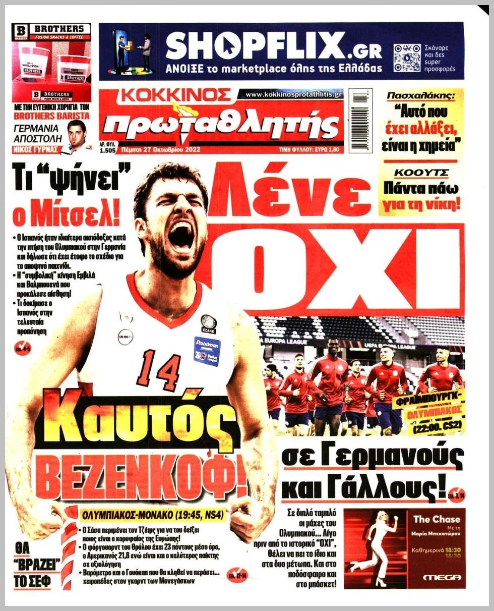 Πέμπτη 27 ΟΚΤΩΒΡΙΟΥ 2022