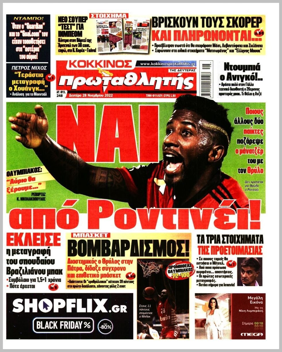 Δευτέρα 28 ΝΟΕΜΒΡΙΟΥ 2022