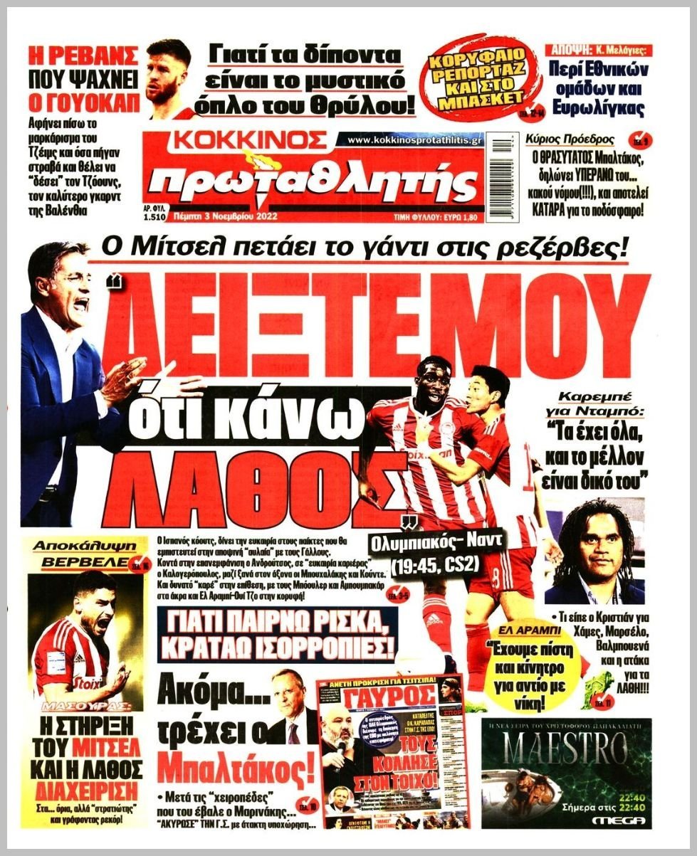 Πέμπτη 03 ΝΟΕΜΒΡΙΟΥ 2022