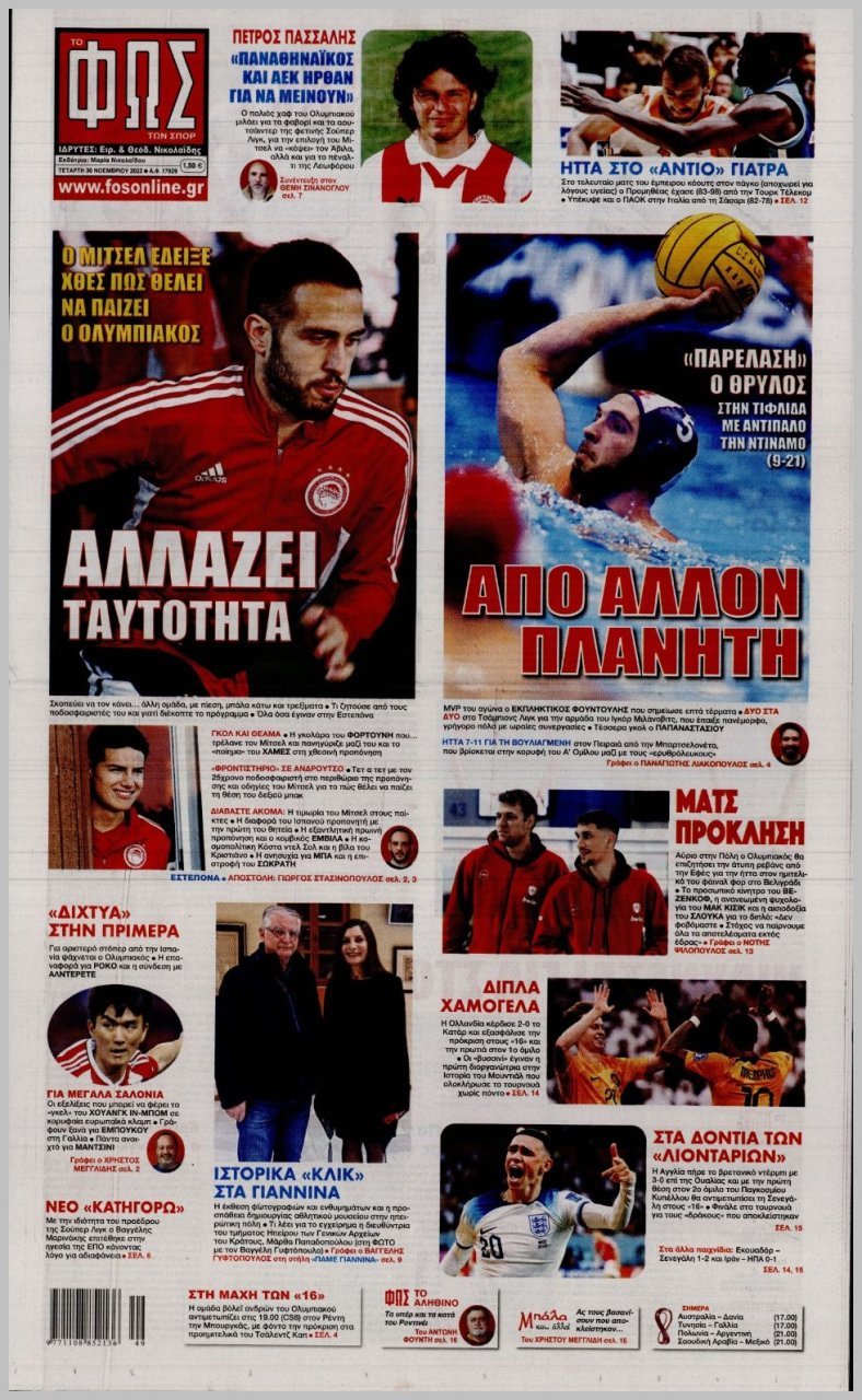 Τετάρτη 30 ΝΟΕΜΒΡΙΟΥ 2022