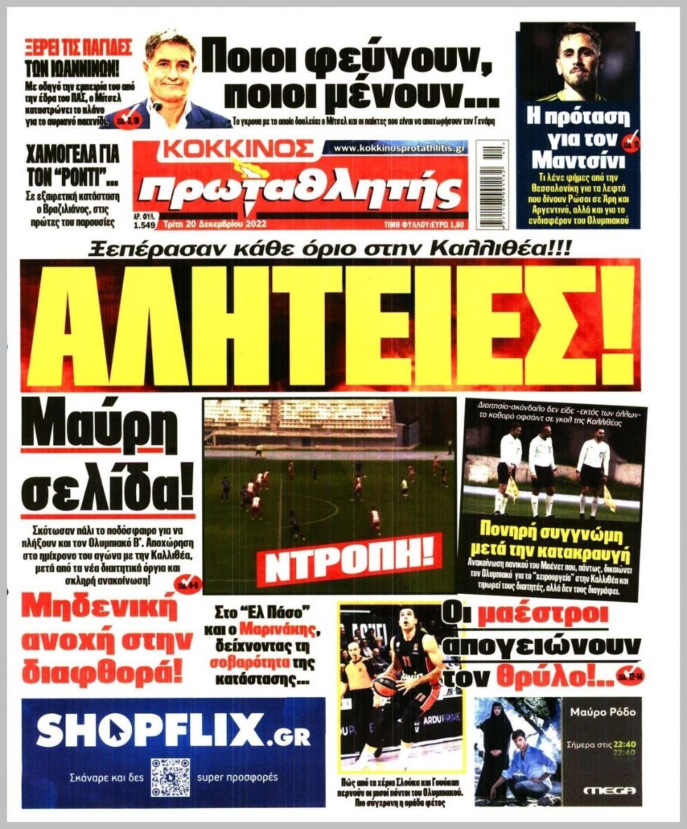 Τρίτη 20 ΔΕΚΕΜΒΡΙΟΥ 2022