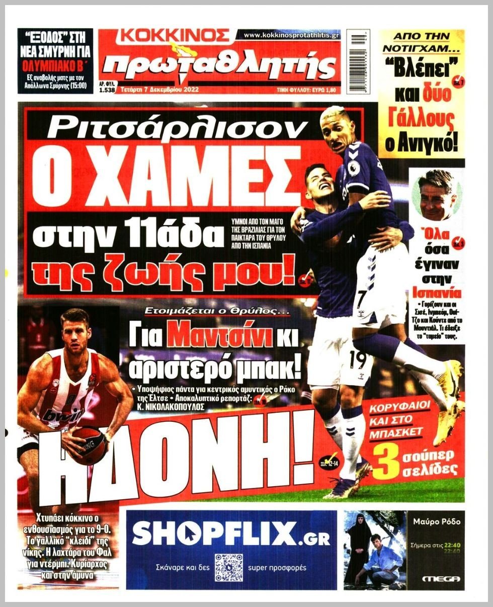 Τετάρτη 07 ΔΕΚΕΜΒΡΙΟΥ 2022