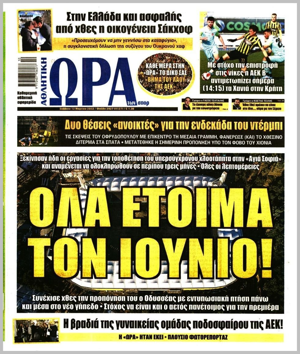 Saturday 12 ΜΑΡΤΙΟΥ 2022
