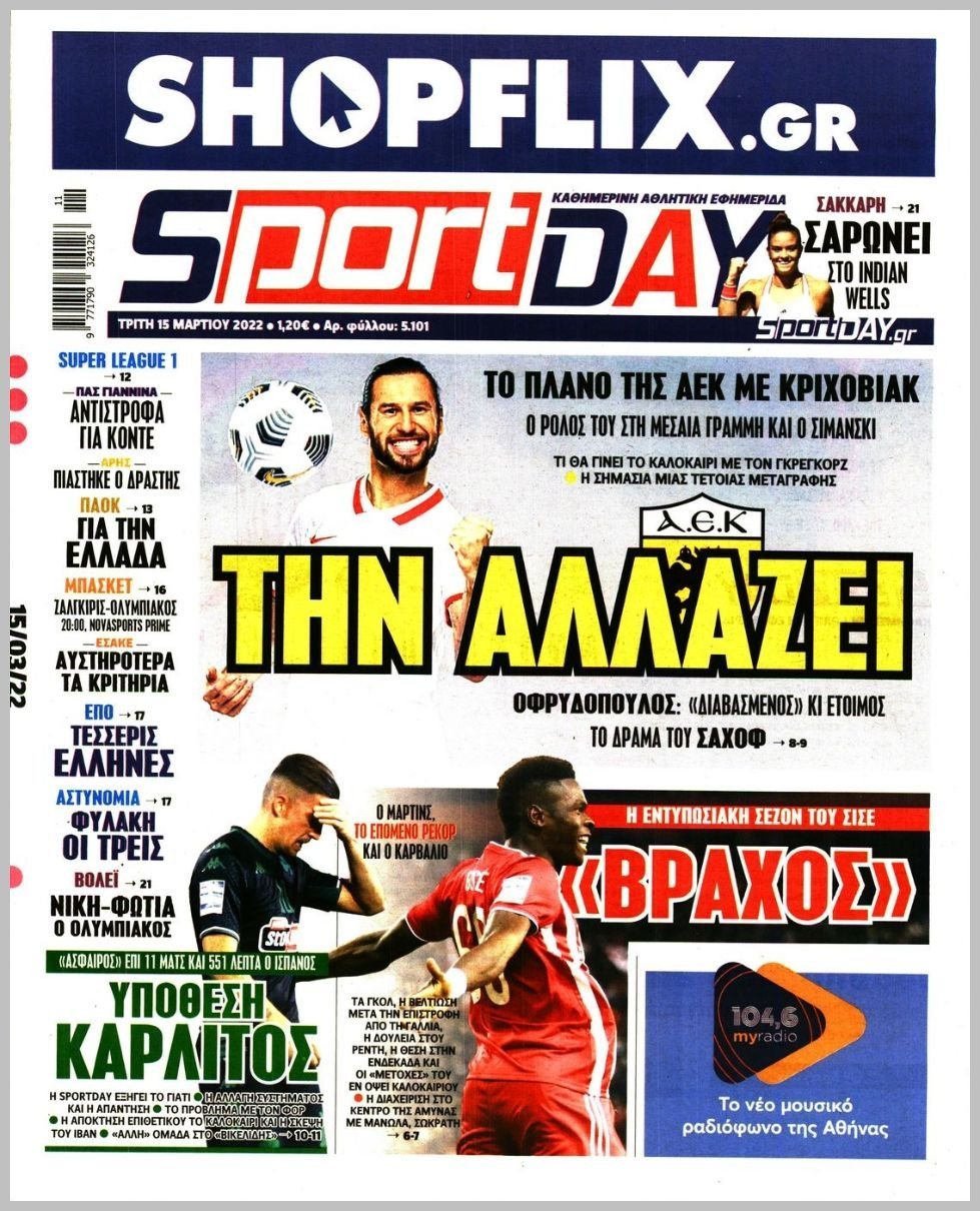 Tuesday 15 ΜΑΡΤΙΟΥ 2022