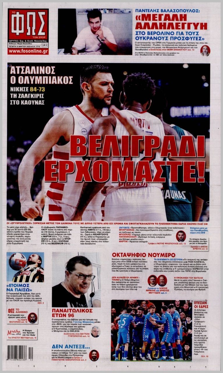 Wednesday 16 ΜΑΡΤΙΟΥ 2022