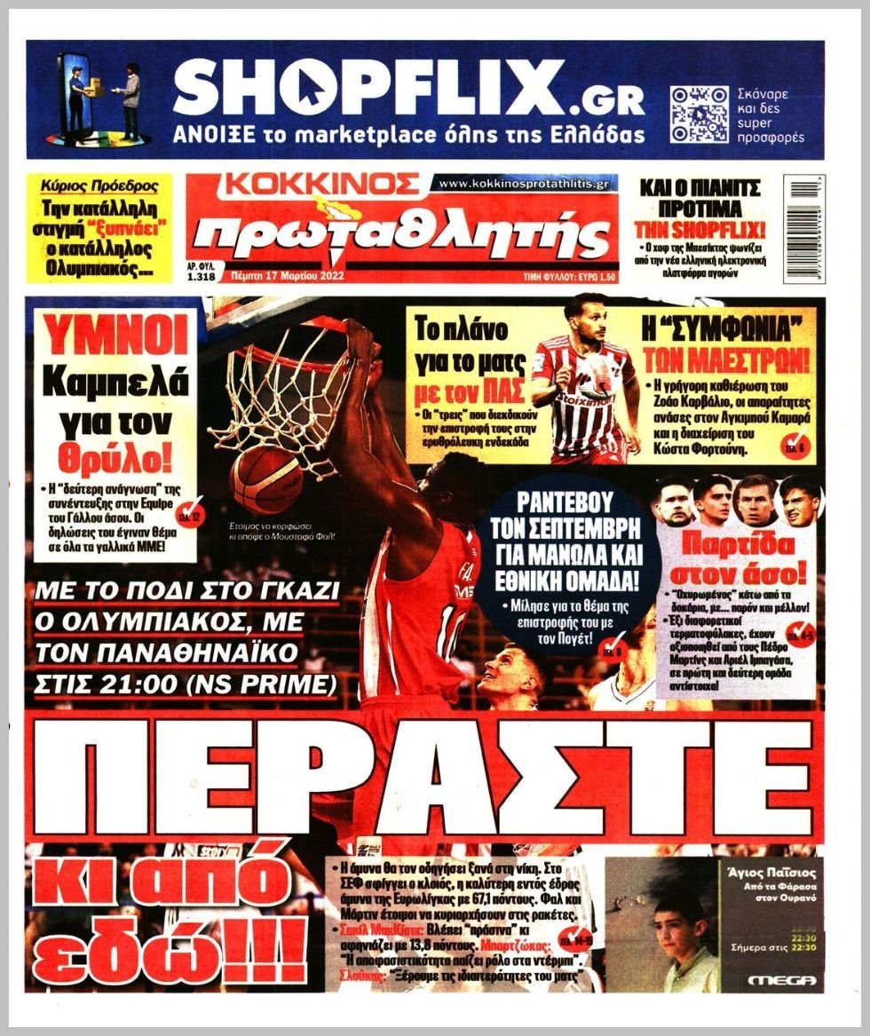 Thursday 17 ΜΑΡΤΙΟΥ 2022