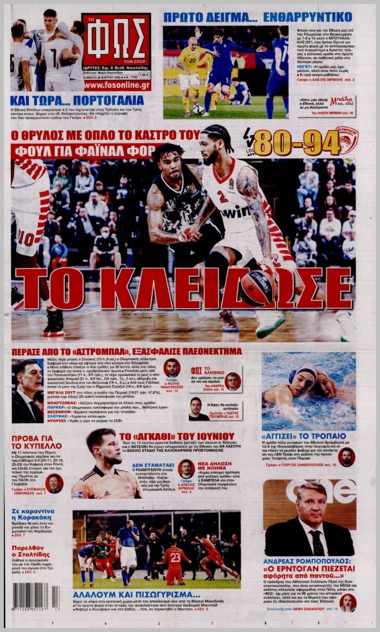 Saturday 26 ΜΑΡΤΙΟΥ 2022