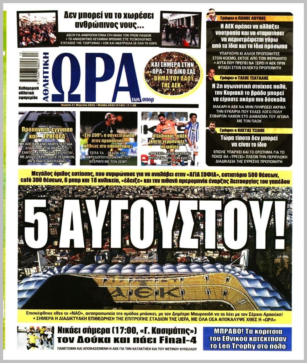 Thursday 31 ΜΑΡΤΙΟΥ 2022