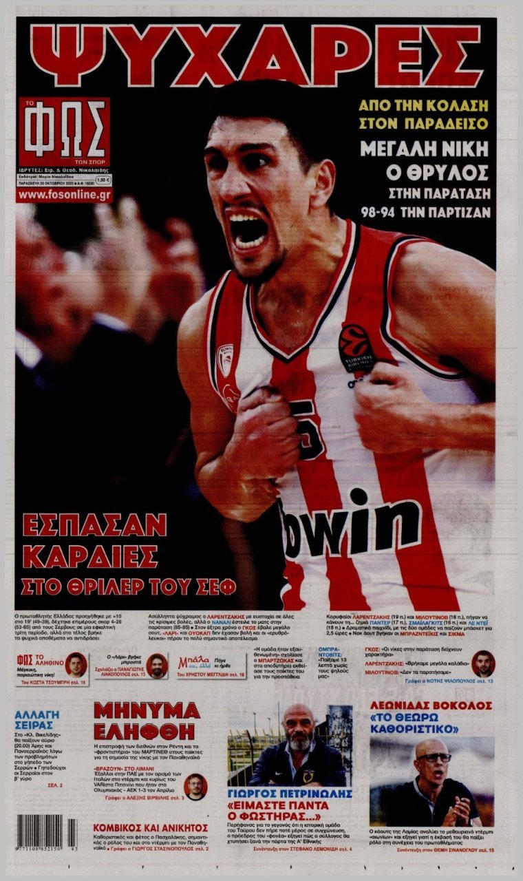 Παρασκευή 20 ΟΚΤΩΒΡΙΟΥ 2023