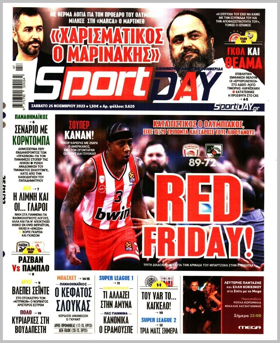 Σάββατο 25 ΝΟΕΜΒΡΙΟΥ 2023