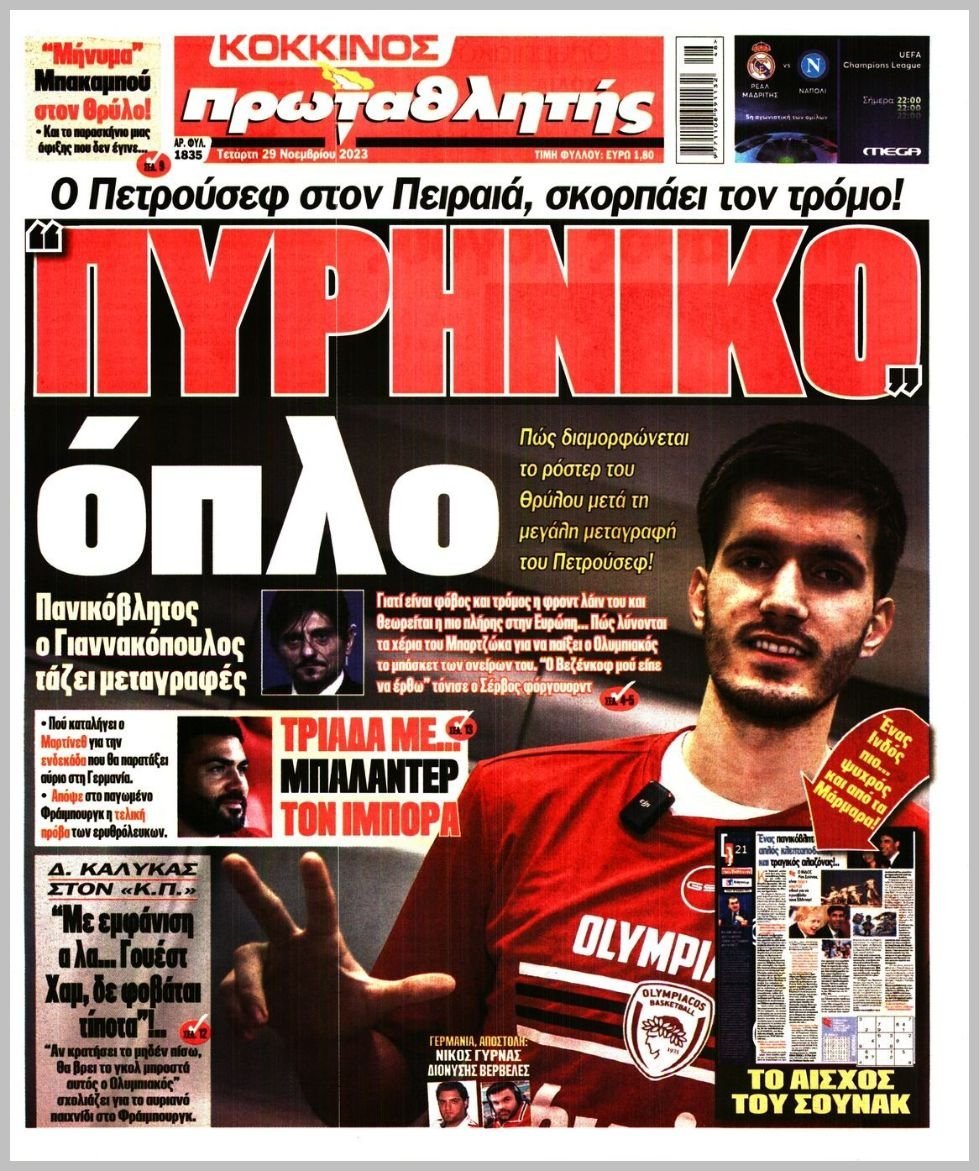 Τετάρτη 29 ΝΟΕΜΒΡΙΟΥ 2023