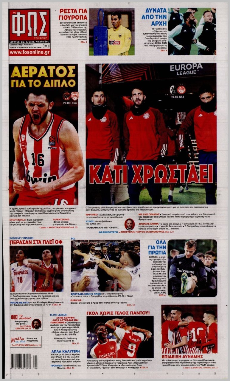 Πέμπτη 30 ΝΟΕΜΒΡΙΟΥ 2023