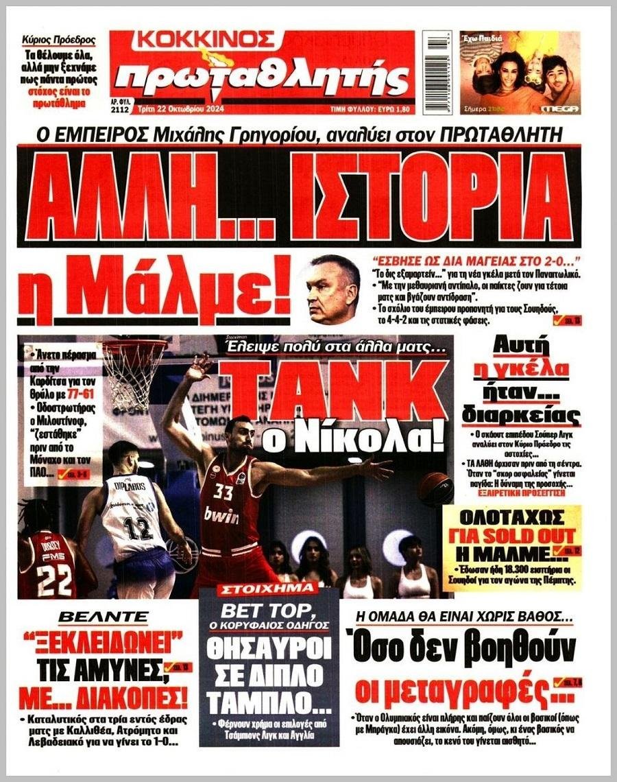 Τρίτη 22 ΟΚΤΩΒΡΙΟΥ 2024