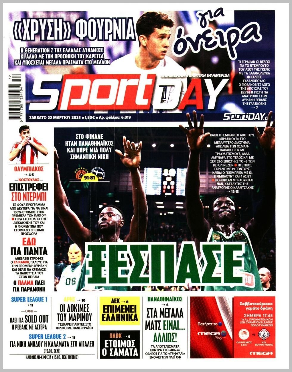 Saturday 22 ΜΑΡΤΙΟΥ 2025