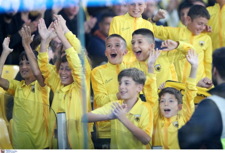 Θερμό χειροκρότημα για την Κ12 της ΑΕΚ που ειναι και στην εξέδρα. Το χάρηκαν με την ψυχή τους τα παιδιά της ΑΕΚ